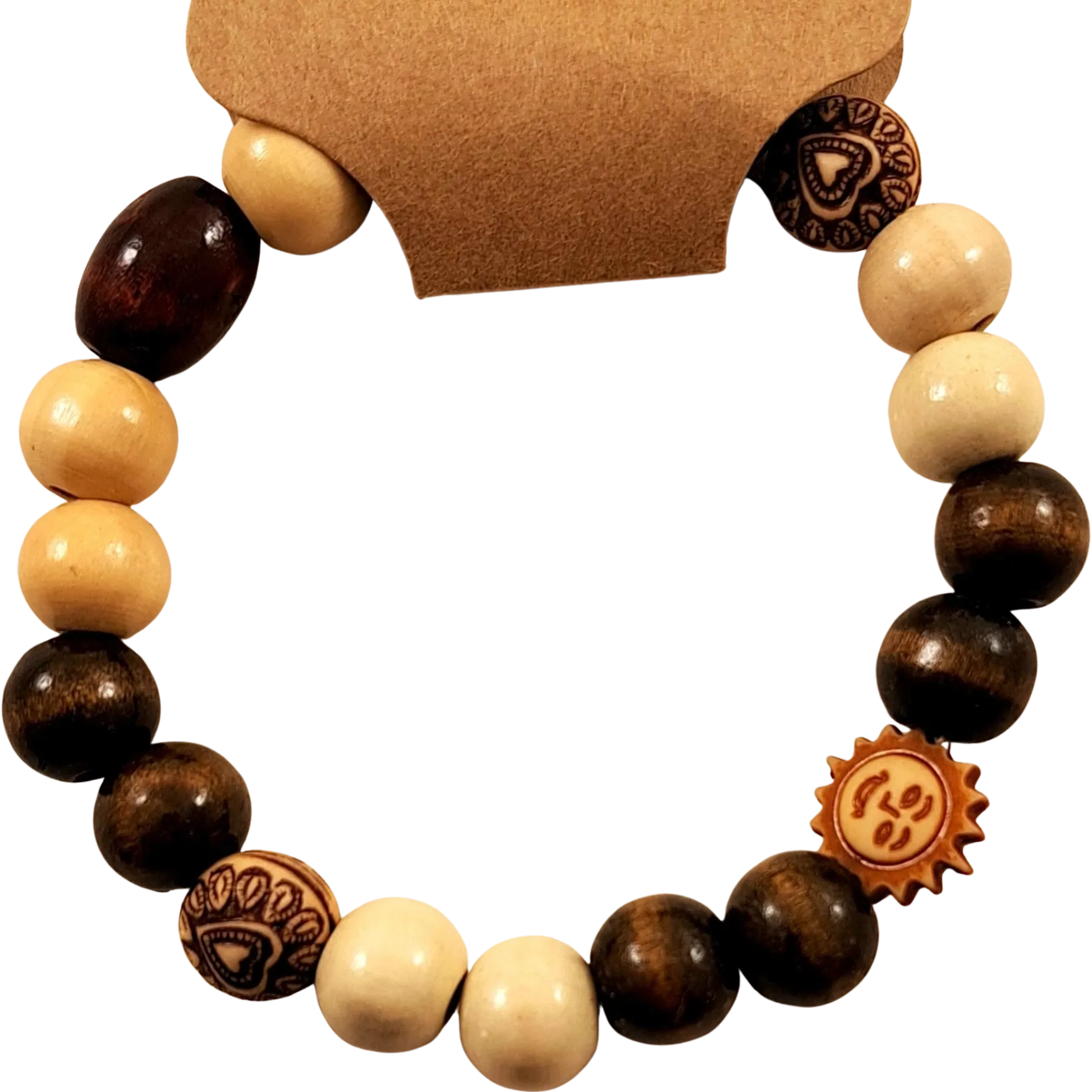 Materials: Smooth wooden beads featuring hearts and a signature happy smiling sun centerpiece